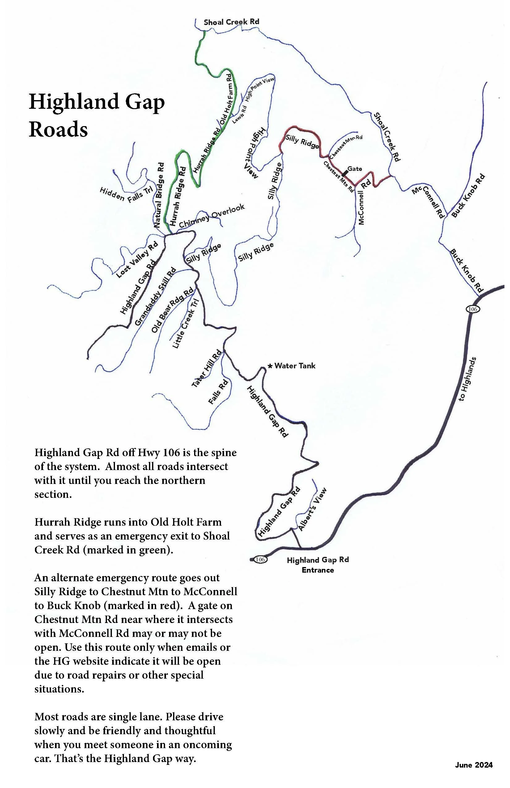 To report a Highland Gap Road maintenance issue contact Director of Roads, Jerry Adams 478-290-2505